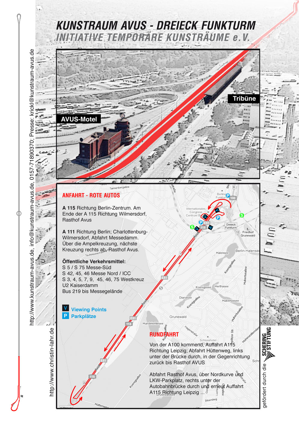 Temporäres, rotes MO(NU)MENT am Tag des Offenen Denkmals, Sonntag, den 12.09 2010, 15:00 - 16:00 Uhr, AVUS, A 115, zwischen AVUS-Motel und ehemaliger Tribüne im Rahmen des Aktionstages von KUNSTRAUM AVUS - DREIECK FUNKTURM, Berlin