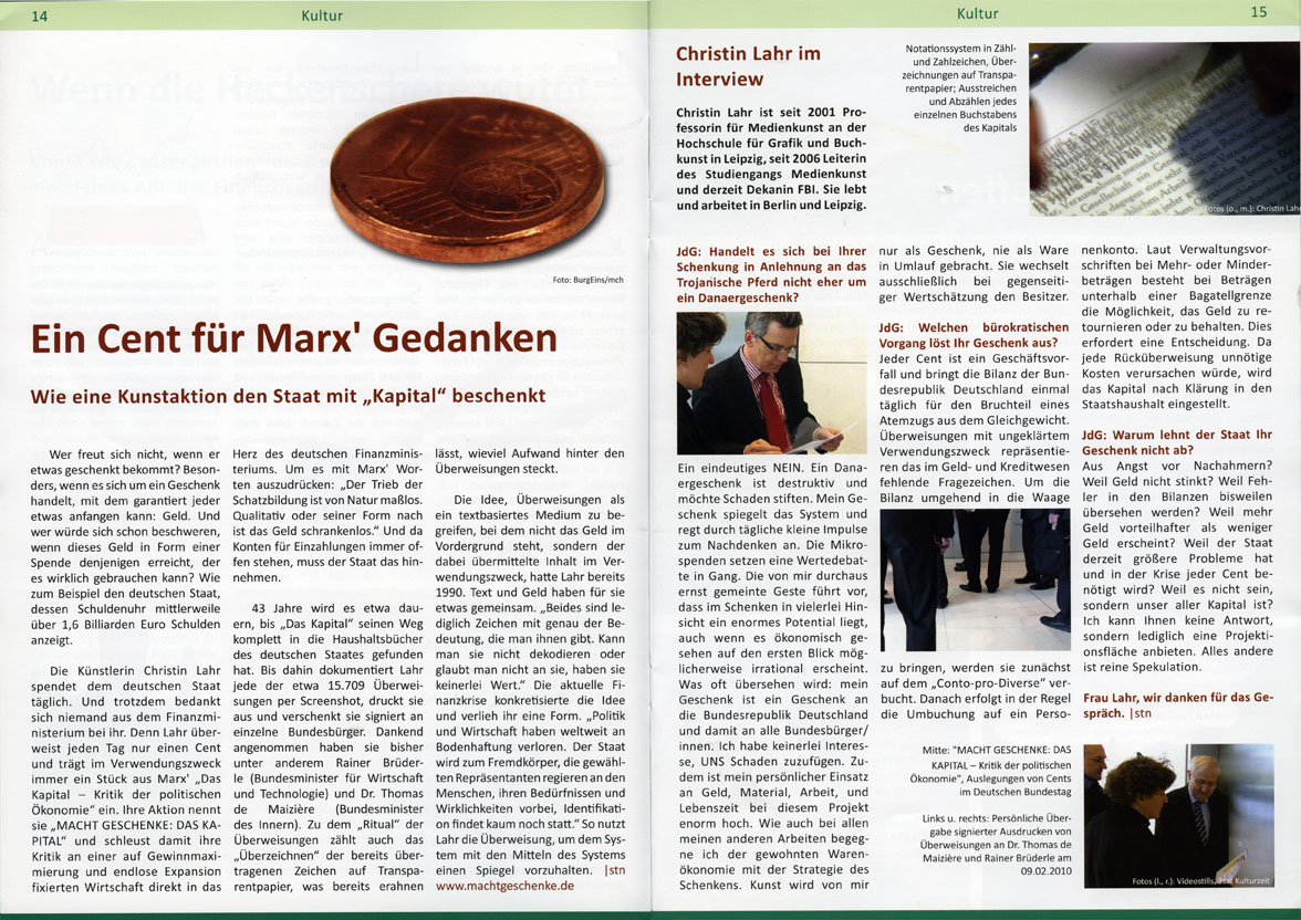 Ein Cent für Marx´Gedanken - Wie eine Kunstaktion den Staat mit "Kapital" beschenkt